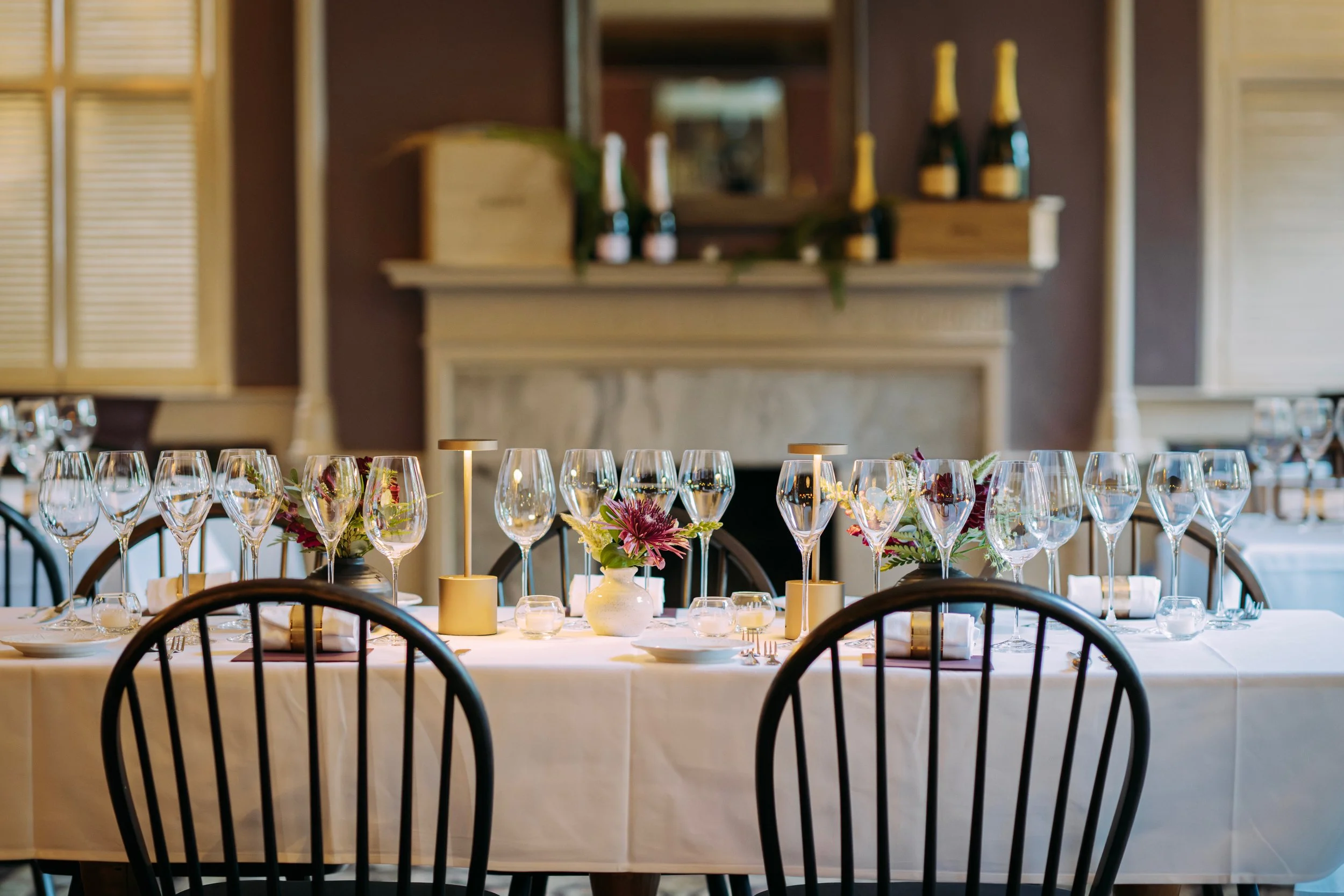 Our historic home features several elegant dining rooms, many of which are available for private events. Whether you're planning an intimate evening for two or a celebration with 100 or more guests, our dining rooms offer a setting filled with elegant Southern charm. The private courtyard, beloved by guests, is the perfect space for cocktail receptions, and wedding celebrations. Each event is thoughtfully tailored to your needs, whether it's a rehearsal dinner, corporate function, family celebration, or any special occasion you have planned.